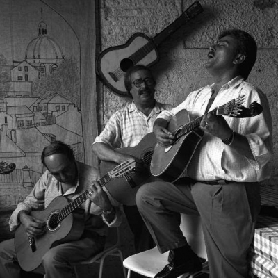 De vez em quando descobria uma nova taberna com fado, mais retirada. Eram sempre homens, principalmente reformados, mas também trabalhadores, camionistas, estivadores, vendedores. Qualquer coisa os ligava, cantavam por prazer, não havia preocupação com público. Um turista ou outro podia aparecer. Isto passava-se tanto em Alfama como no Bairro Alto, também na Mouraria, na Madragoa, em Alcântara no Beato, na Bica, em Campo de Ourique. Não eram locais muito visitados, sequer conhecidos, cantava-se igualmente nos bairros populares de Lisboa. Fotografar nestes locais não era muito recomendável. Eu não passava de um estranho, que tirava fotografias, furtava imagens (e a alma quem sabe?), sabe-se lá para quê, podia ser da polícia, ou das finanças. Várias vezes tive problemas nas tabernas.
